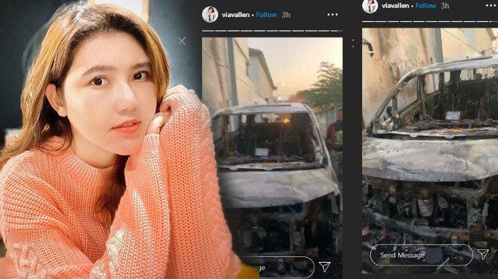 Dalam video yang diunggah di insta story @Viavallen, tampak sang pedangdut awalnya merekam dari jauh mobilnya yang sudah dilalap api.