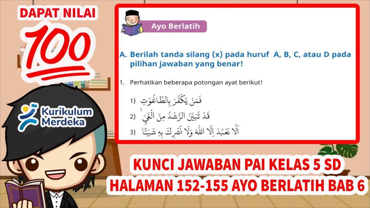 TRIBUNNEWSMAKER.COM - Simak soal dan kunci jawaban Pendidikan Agama Islam (PAI) Kurikulum Merdeka kelas 5 SD halaman 152, 153, dan 154. Siswa akan mengerjakan tugas bagian Ayo Berlatih.