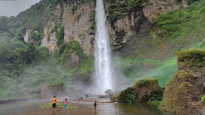 Inilah salah satu curug menarik di Cianjur, Jawa Barat. Lokasinya sekitar 61,7 kilometer atau sekira 2 jam 30 menit perjalanan dari Alun-alun Cianjur.