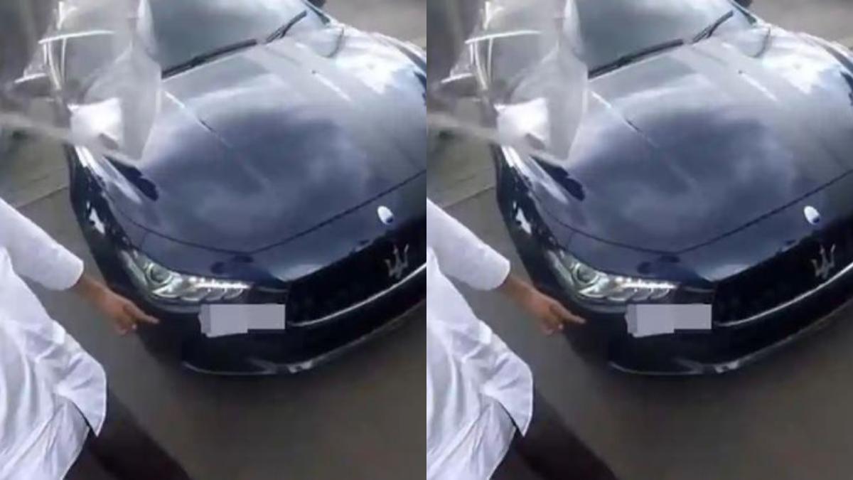 - Di tengah proses pemeriksaan, seorang pria dari dalam mobil mendadak keluar dan tampak menyerahkan selembar uang pecahan Rp100 ribu kepada petugas.